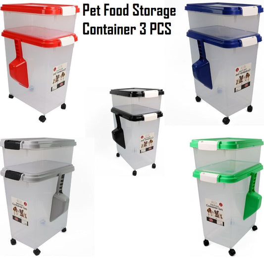 3 Pcs Airtight Pet Food Storage Container with Plastic Measuring Scoop for Pets